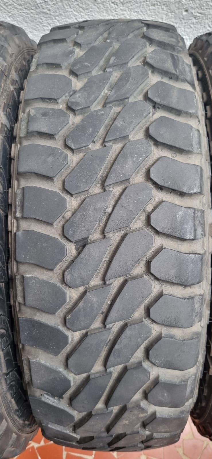 A altura do sulco do pneu novo é de 13mm e os 04 usados estão com